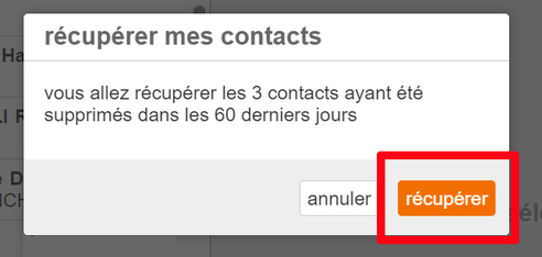 Cliquez sur Récupérer : l’ensemble des contacts supprimés au cours des 60 derniers jours seront restaurés.