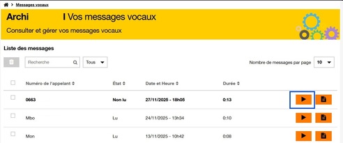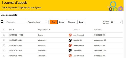 Vous accédez à l’ensemble des appels émis, reçus et manqués.