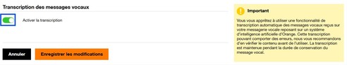 Pour activer le service de transcription des messages vocaux, appuyez sur le bouton bascule "Activer la transcription".