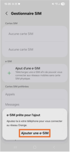 Une fois le transfert terminé, une notification apparait. Sélectionnez Ajouter une eSIM.